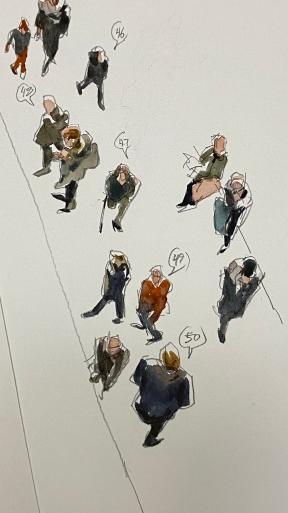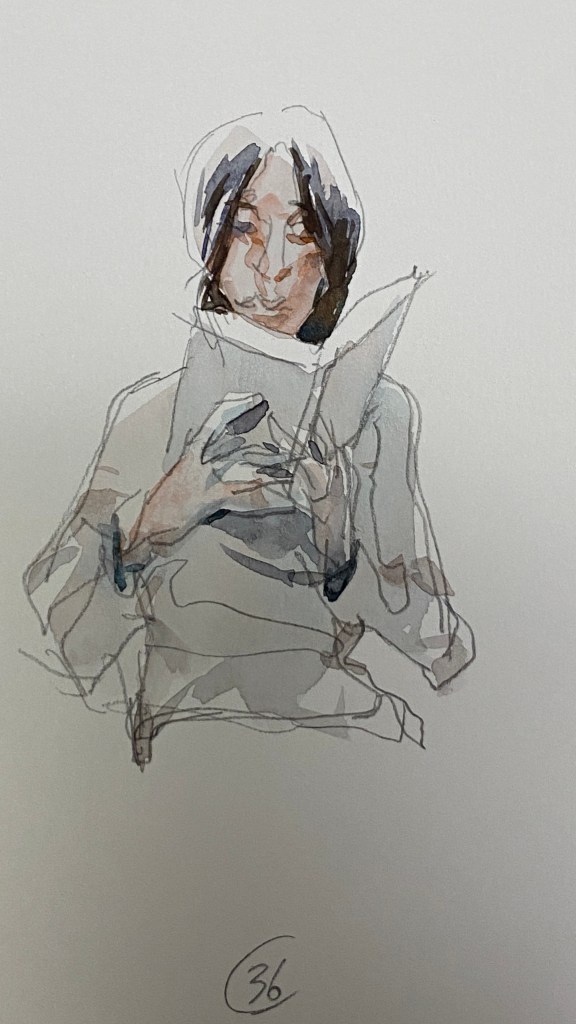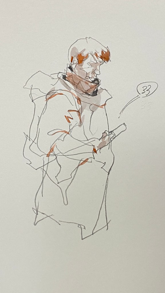 I wanted to see if I could still do it. (Sketch 100 people in a single day.) And I’m happy to say, that yes, it’s still possible! But it felt harder than last year. Possibly because I’m drawing a little “tighter” these days? Or maybe I just forget every year what it’s like :)