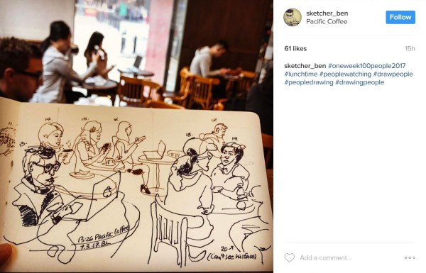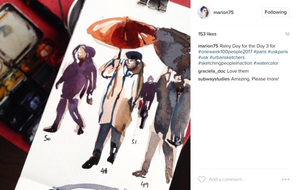 Here’s a small gallery of sketchers I found on Instagram. Click the pics to be taken to the artists’ photo streams.