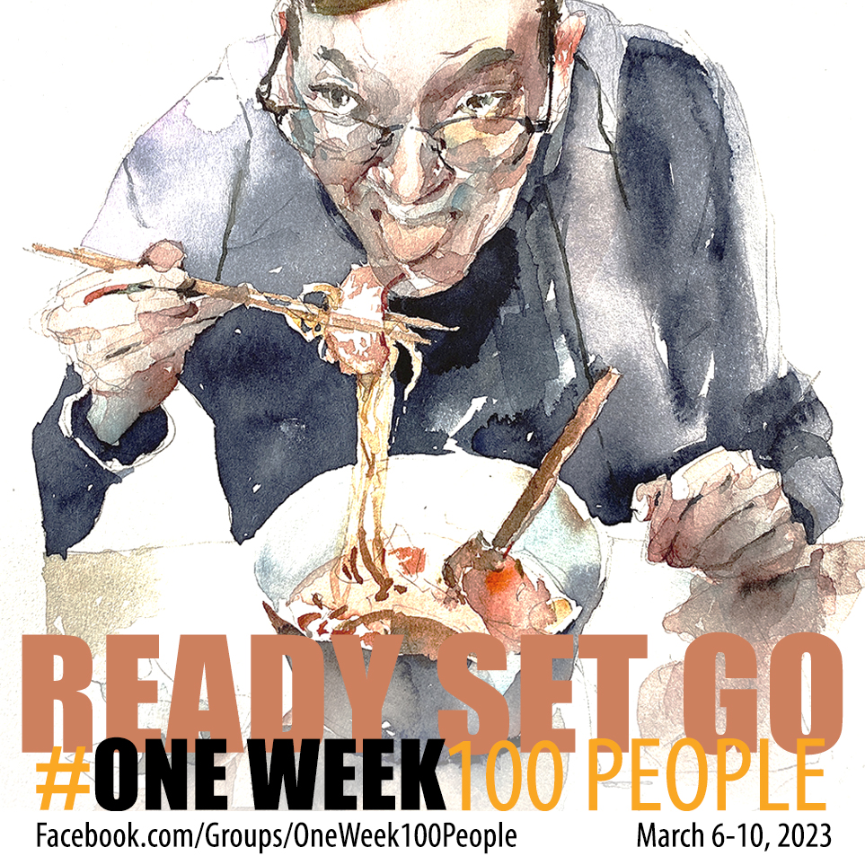 #OneWeek100People is a free annual event launched by myself, and my sketching friend Liz Steel back in 2017. Every year we invite sketchers from all around the world gather and doodle people. You can read more about it on my event page [ HERE ] or head over to the Facebook group and join up. If you don’t like Facebook, that’s perfectly fine, just use the hashtag on your social media of choice.