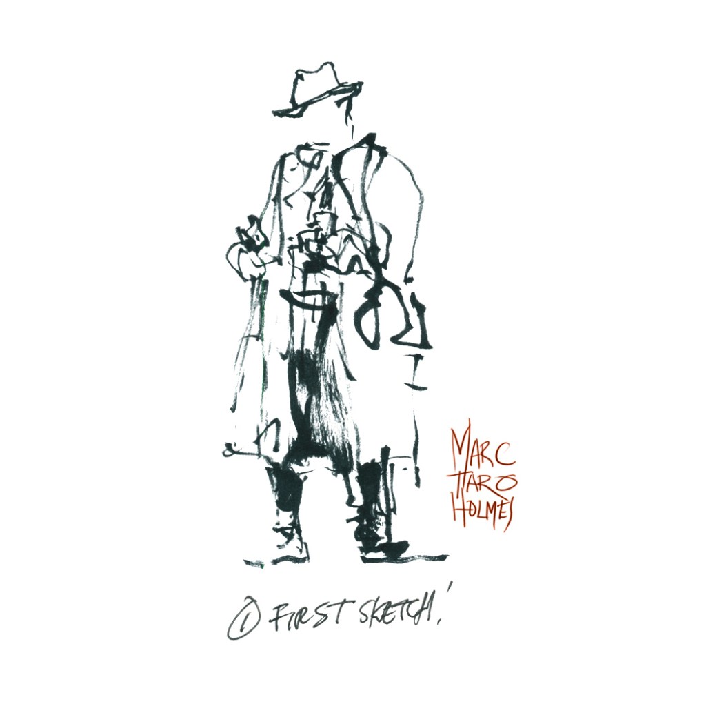 I always like to start the marathon with a warmup; so I went out with the most basic tools possible. Just a little bottle of ink, a dipping pen, and an old pointed round brush.