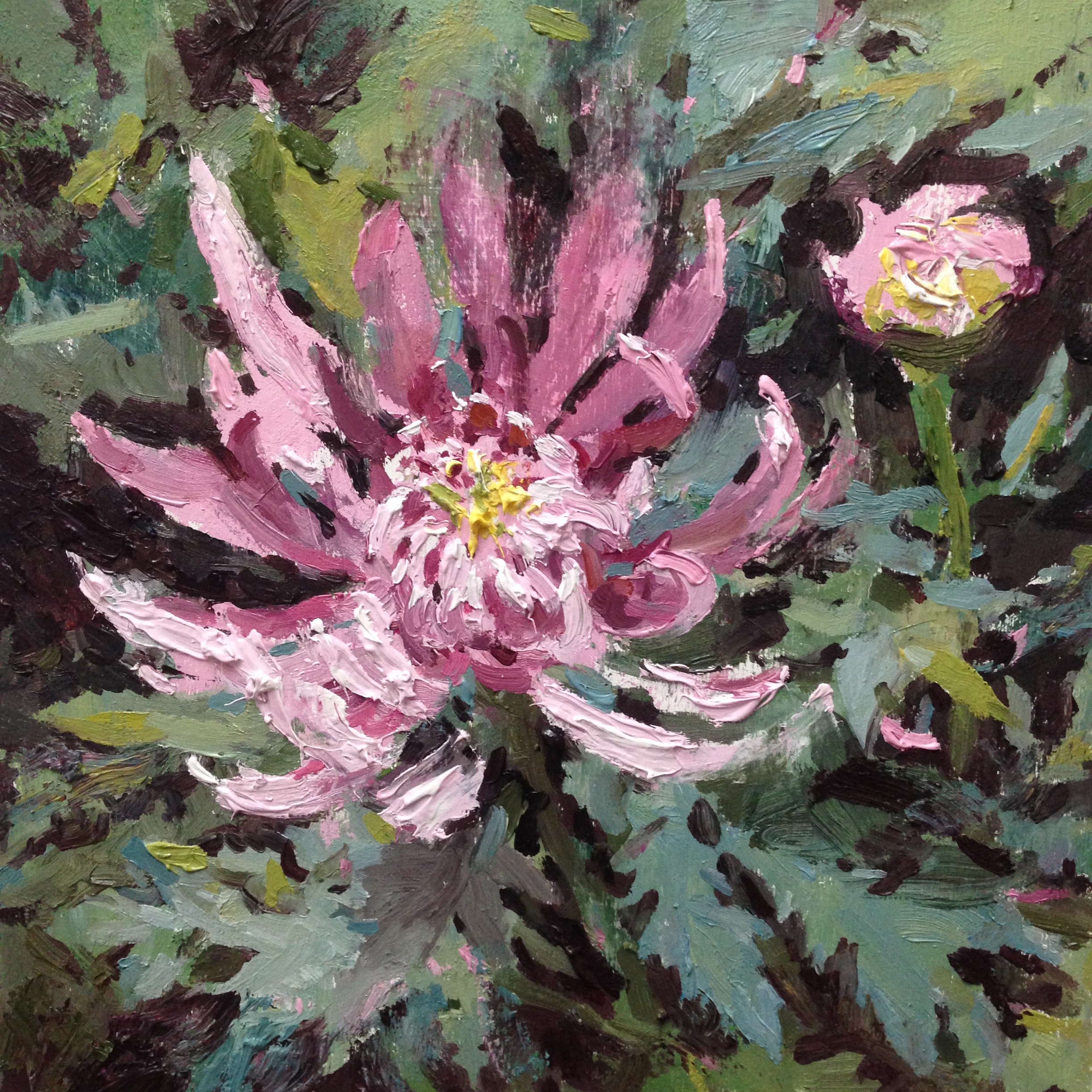 I’ve decided to use it to offer my smaller oil paintings for purchase. Right now, just my 10×10” panels. It seems like a good size for online sales – and – I enjoy painting them! It’s my favorite size – you can make incredible marks at this scale. One swipe of the knife can go across the entire surface. The scale of the impasto, compared to the image, is just perfect, in my opinion.