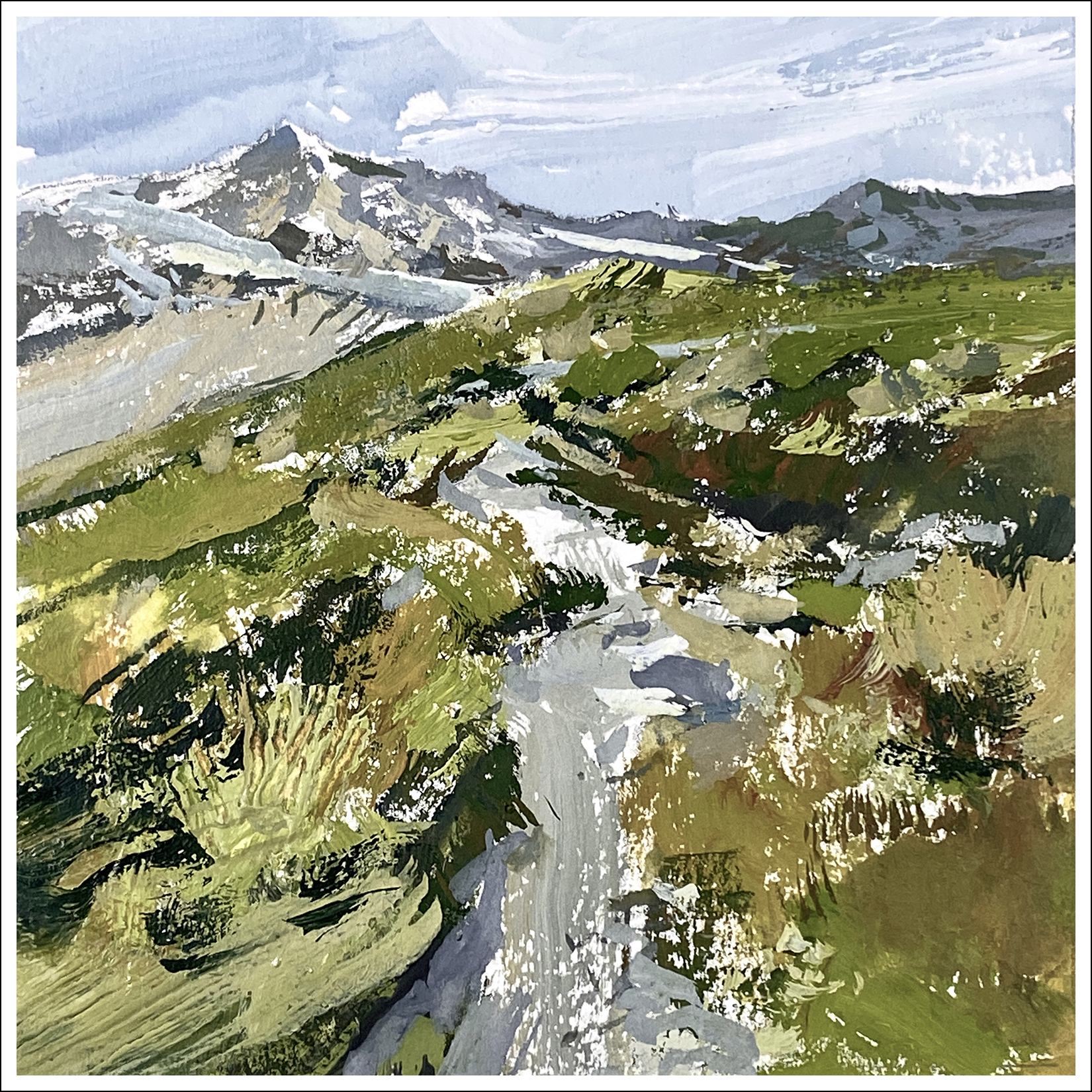 I am using photos (mostly videos) for inspiration, but I’m doing a lot of interpretation; just as you would in real life of course. That’s the beauty of these landscapes; they’re really abstractions.