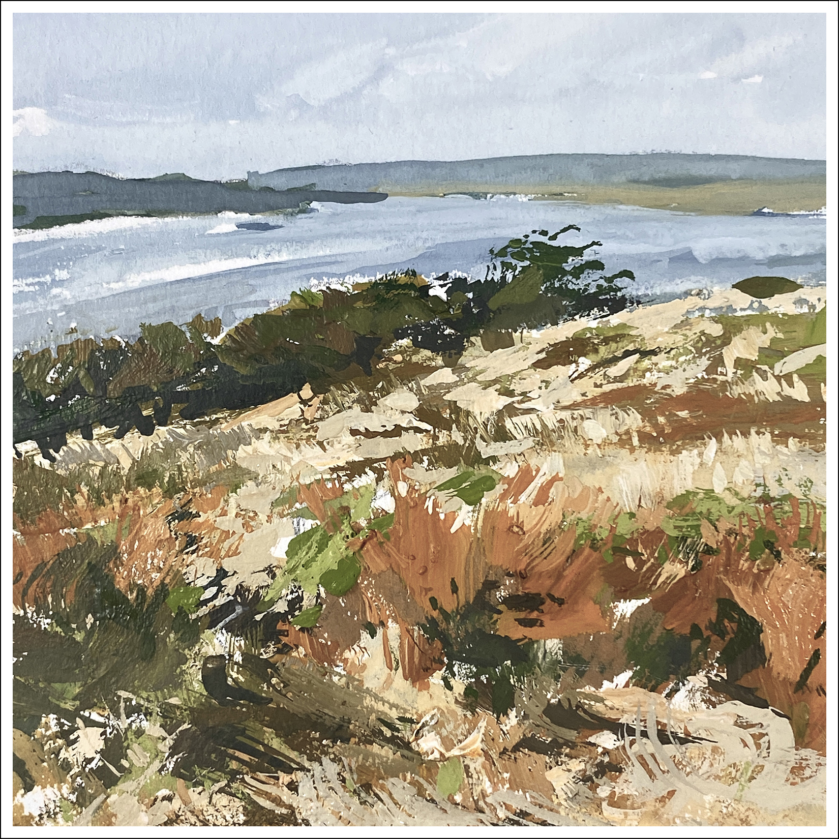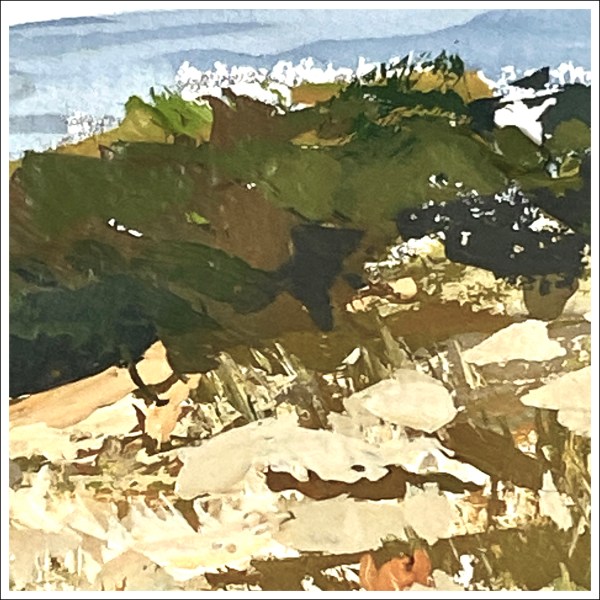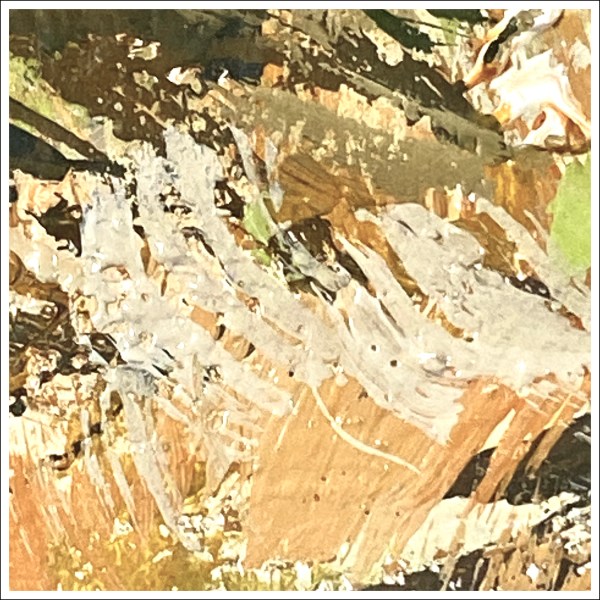 This is one of a series of 4×4″ on 140lb cold press paper, with my gouaches, using this ‘comber’ brush from Rosemary and Co. As you can see, the brush is a kind of ‘rake’ that does a really great job creating texture.