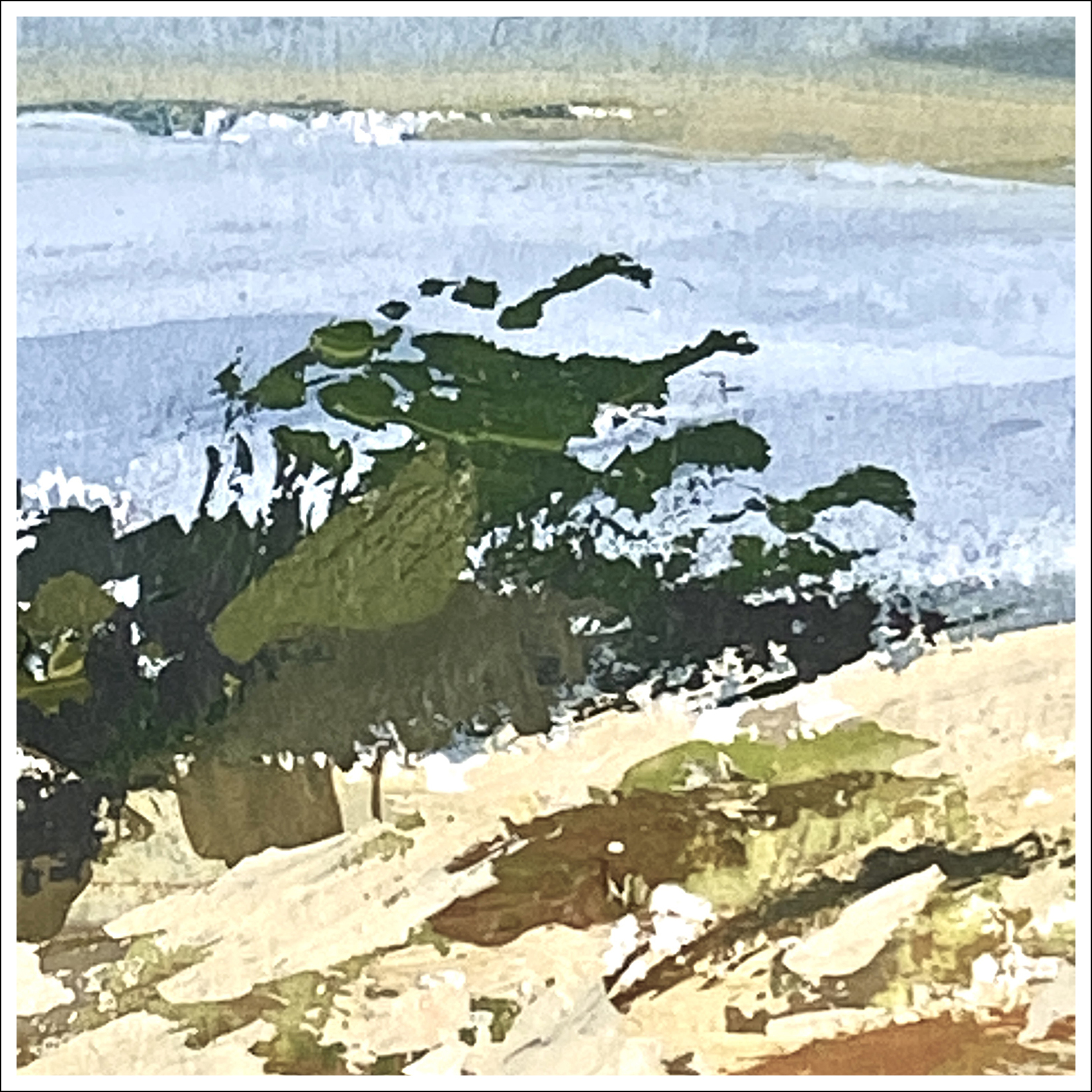 Use bad photos; look at them small on your phone; edit the color balance or temperature; change the season in your mind; work fast; work tiny; work huge; paint from black and white; do a line drawing from the photo and paint from your thumbnail – use any tricks you can think of to decrease the domination of the reference and foreground your personal choices.