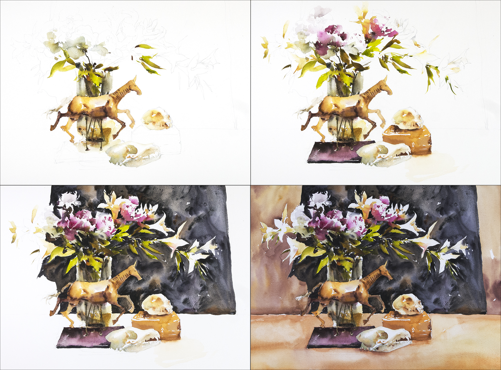 I’ll talk about layering from lighter to darker in three steps which I call Tea, Milk and Honey, and what that actually means for different objects of various values and materials.