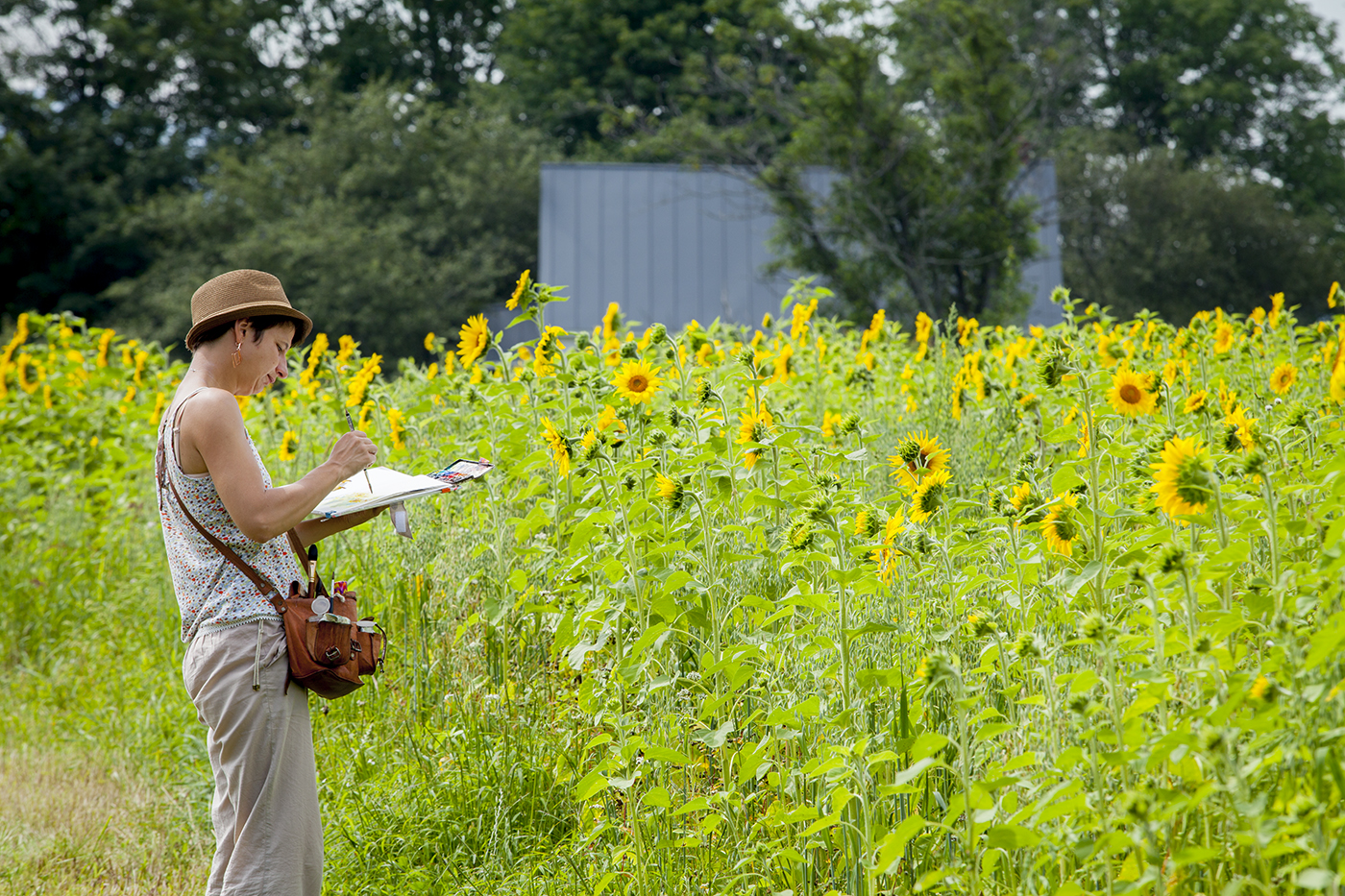 I didn’t get the amazing sunflowers into this sketch. Though I did make a bid for the Queen Anne’s Lace.