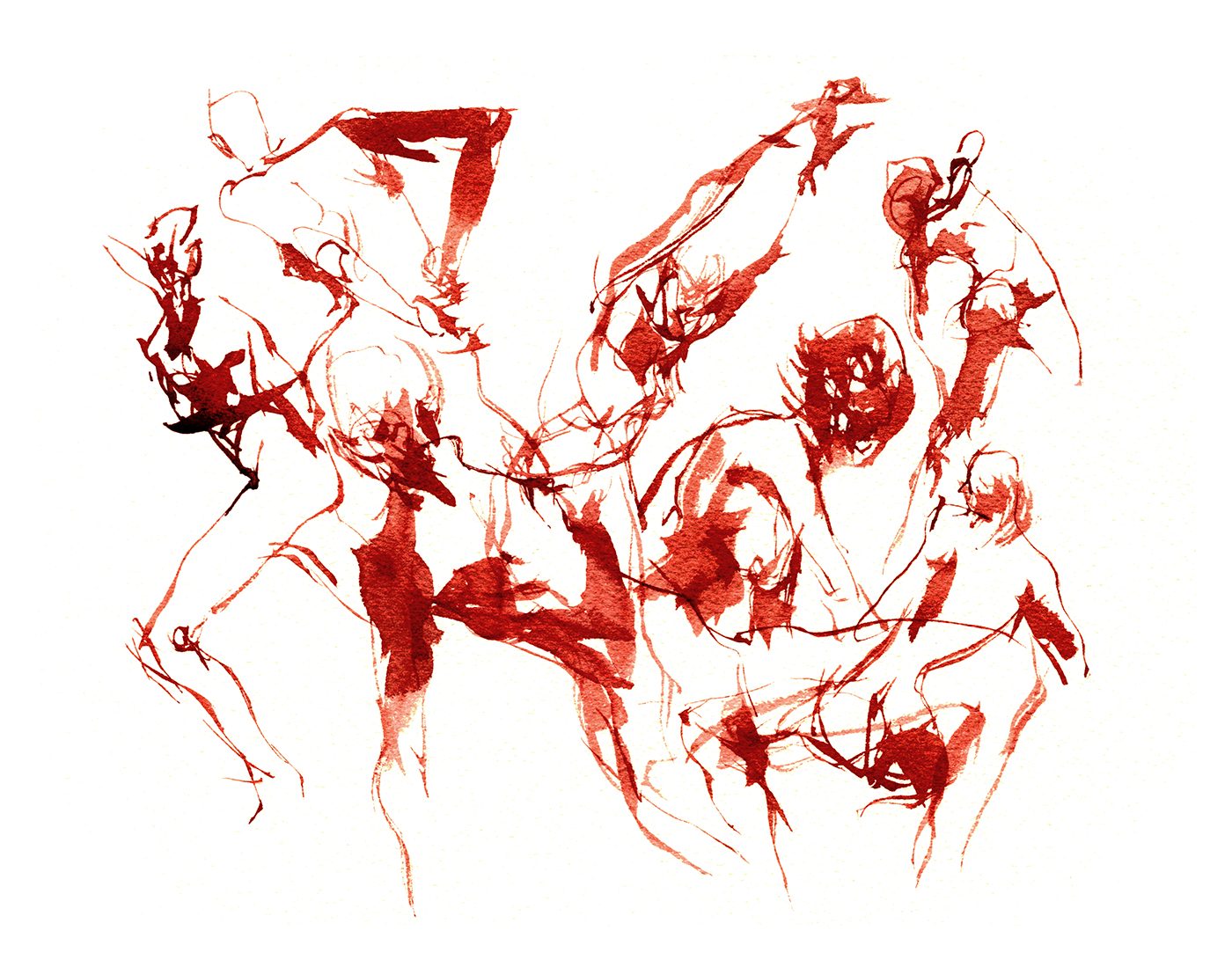 What a challenge to draw all these white dresses with black ink :) But of course here I’ve cheated – using my usual Platinum Carbon Black sparingly, and relying on dilute Lexington Grey, (sometimes just dirty water), Rome Burning (a pale gold) and Liquitex acrylic ink in Titanium White.