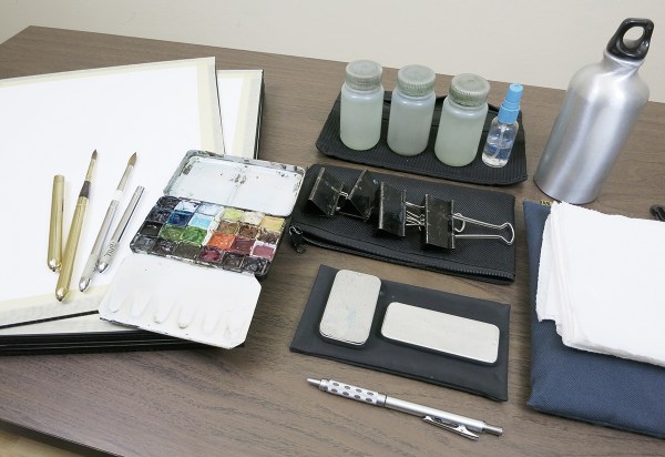 Oh and, here’s some previous years when I carried a tripod easel, brought an ultra-small pen and ink kit, and a bag that’s good for larger panels.