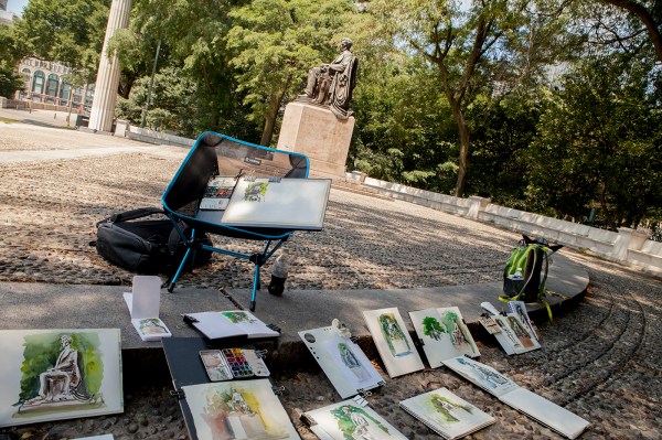I was sketching with Jane Blundell and it got the thumbs up from her. I agree it’s a great option. It’s a little slow to unfold and setup, but it’s ‘hella comfortable. Like a la-z-boy for sketchers.