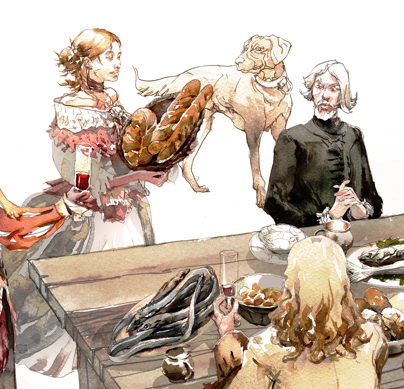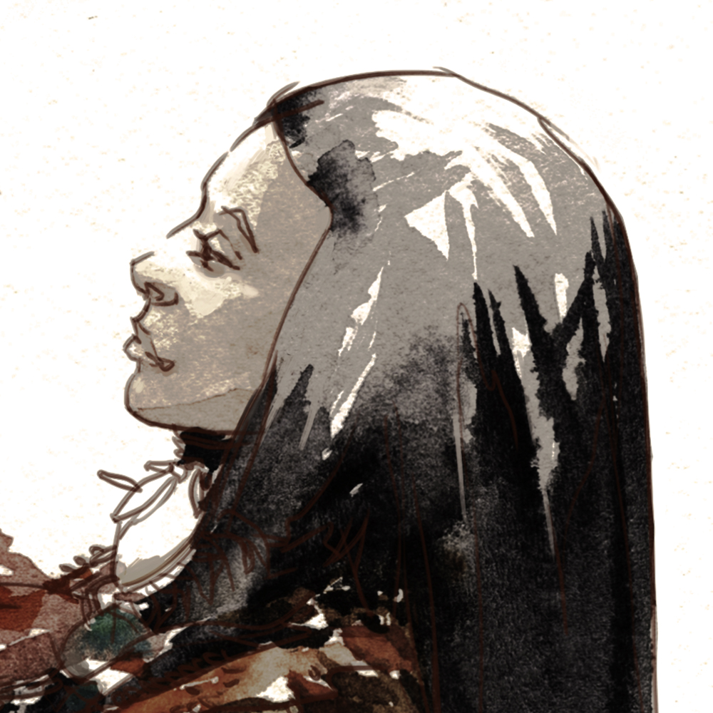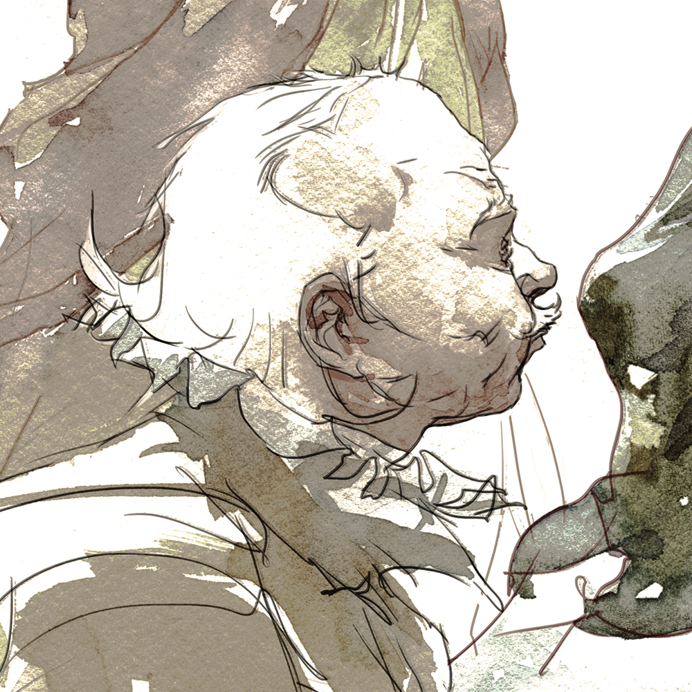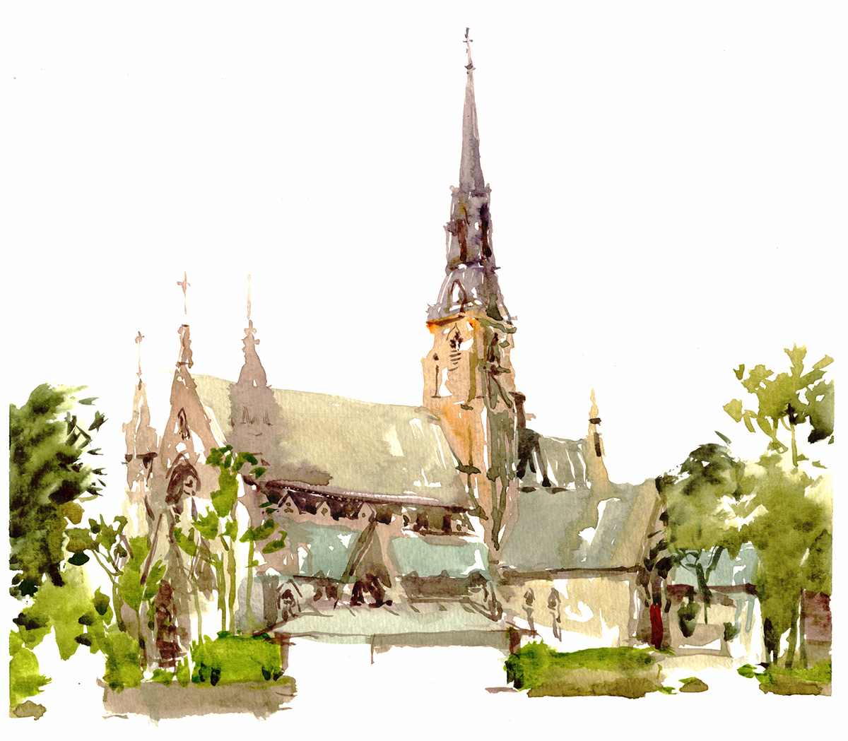 The most recent 2017 version might have become too cartoon-y. This one, executed from I think, Oct 2016? was maybe the best compromise of line drawing and wet-in-wet shape work.