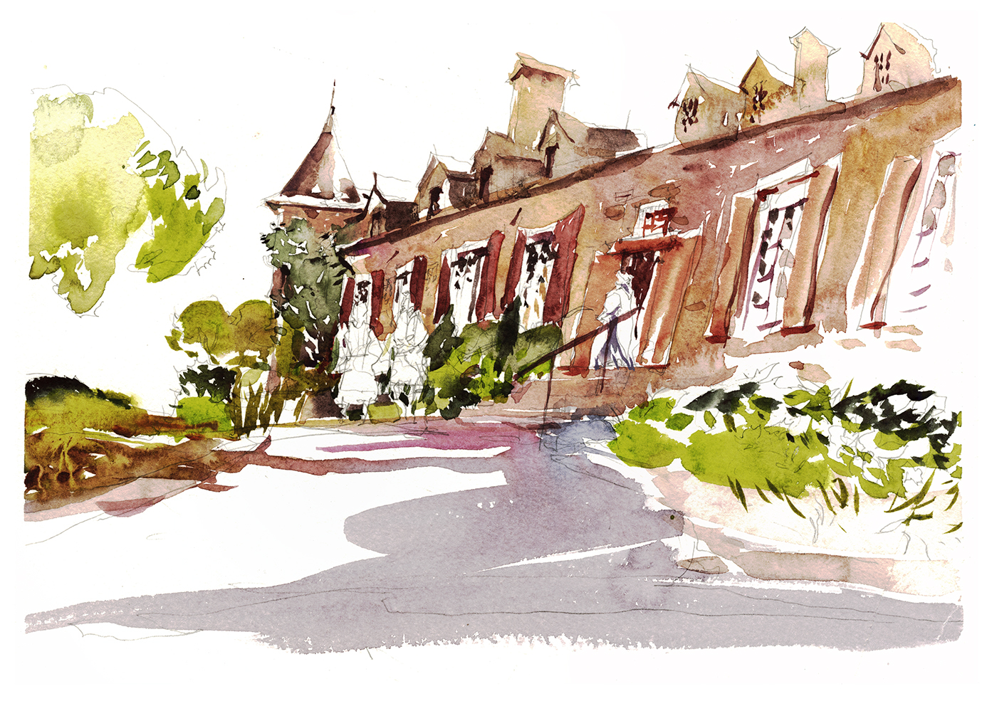 This one is the Chateau Ramsay, sketched from ground level just inside the front gate.