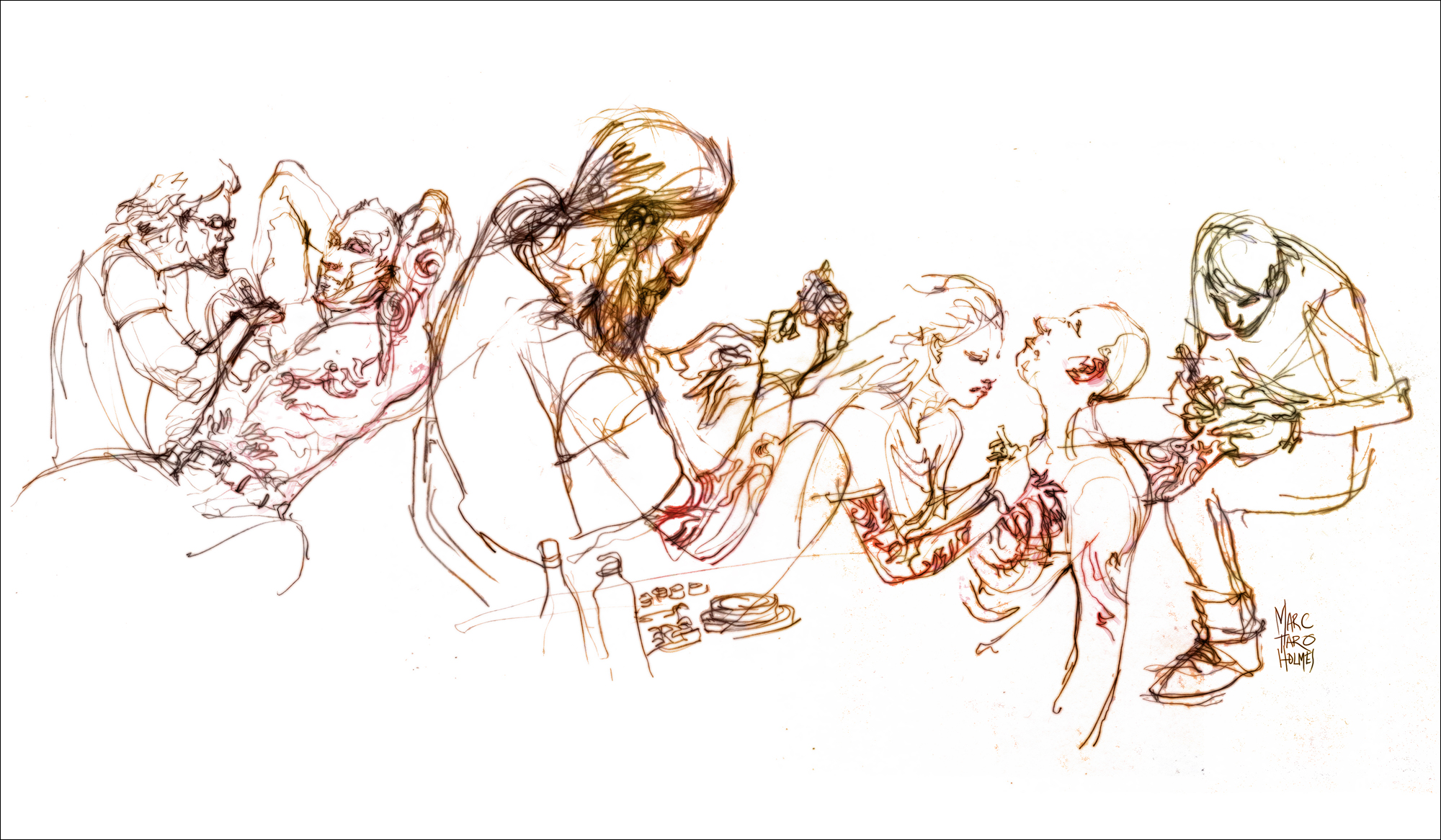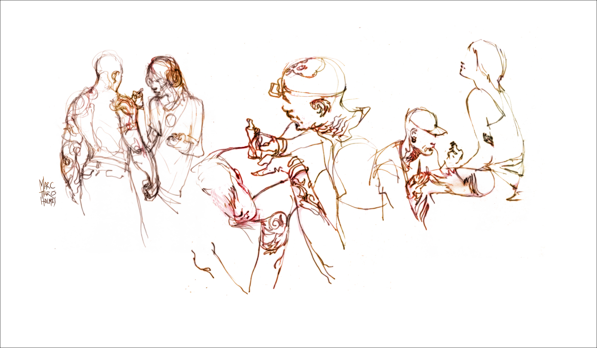 And the main thing, find subjects that are doing something interesting (beyond just waiting for the bus). Both so you have a story to tell with the drawing, and so they don’t simply move off suddenly. Look for public events, performances, or people at work. I came to the tattoo show knowing I’d find good material. You can find these situations anywhere once you start looking.