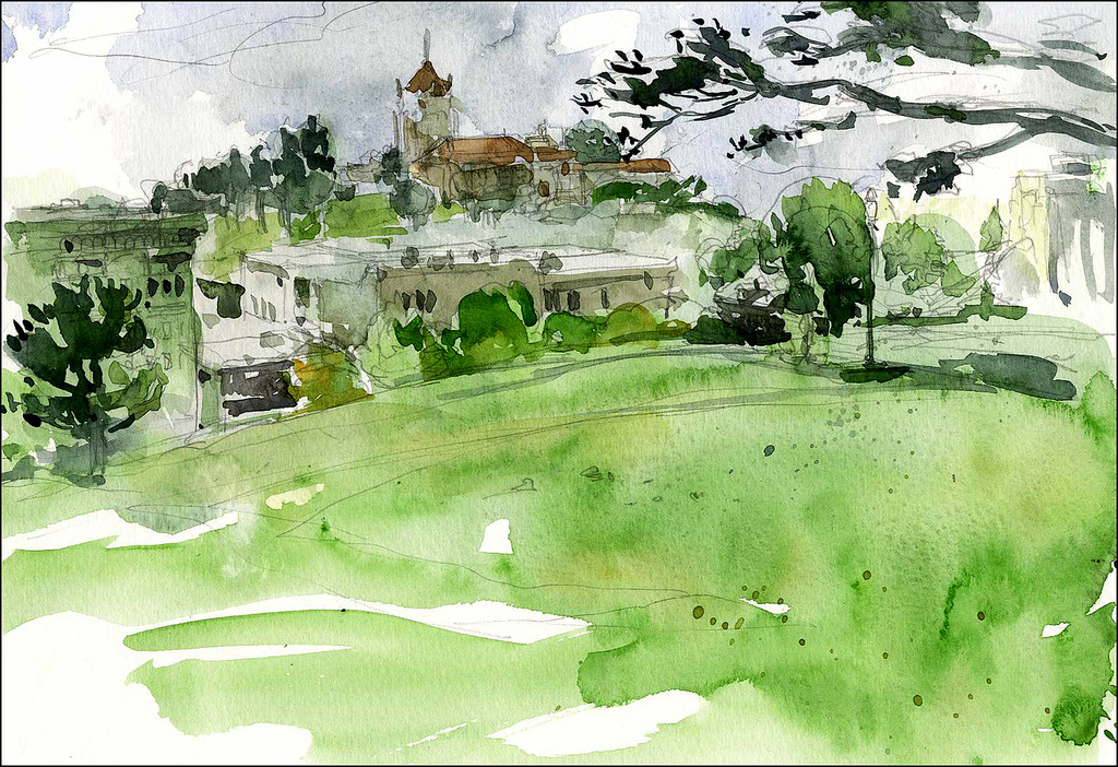 Our drive home from the city takes us past the Palace of Fine Arts – which we’ve drawn many times during the day.