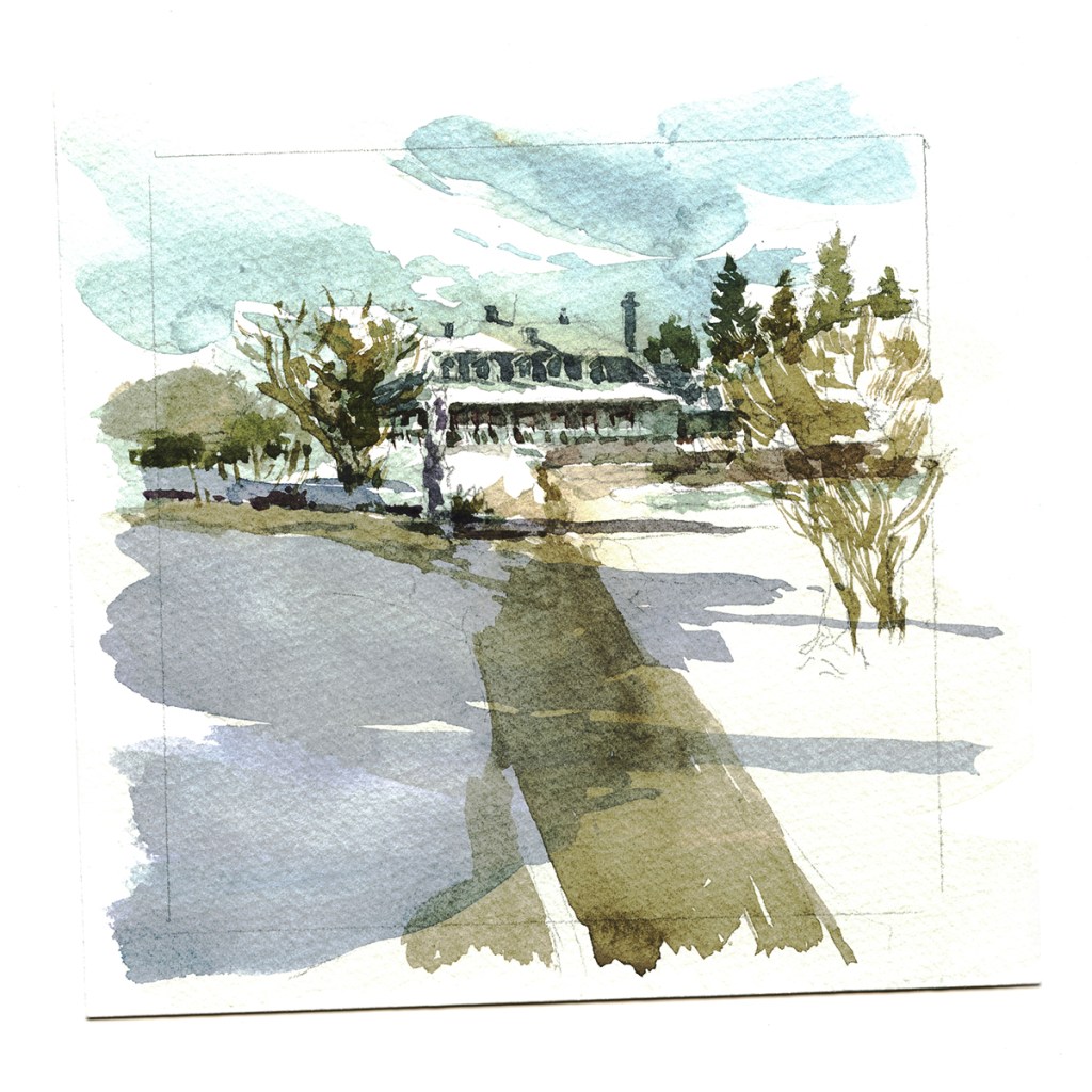 Last year I brought oils, which you can see here; but this year I had #30×30 on my mind, so I brought the watercolors. This was my first serious painting session (other than a few life classes) since last year’s #30×30 marathon.