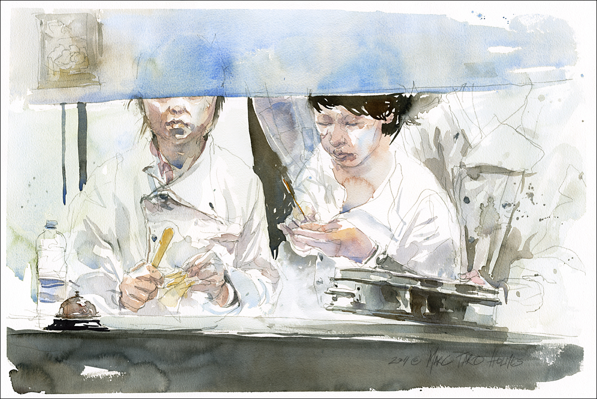 I think everyone is more adept at drawing than painting – most of us use a pen (or at least crayons and markers) for a few years before we pick up a brush. This kind of ‘tinting’ approach lets you create paintings that leverage your drawing skills.
